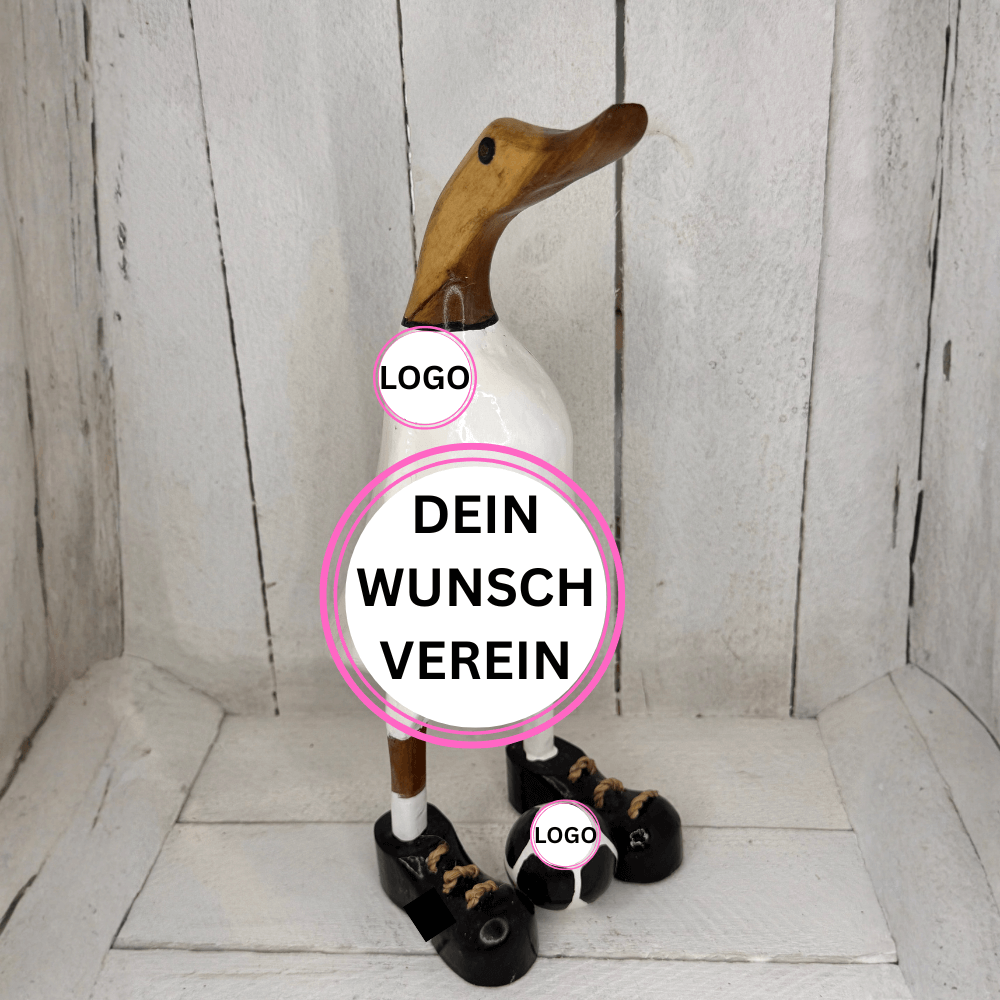 Teile uns einfach DEINE WÜNSCHE MIT . Wir haben Fußball Enten mit weißen, blauen, roten, gelben, grünen Trikot´s! Da finden wir was passendes.