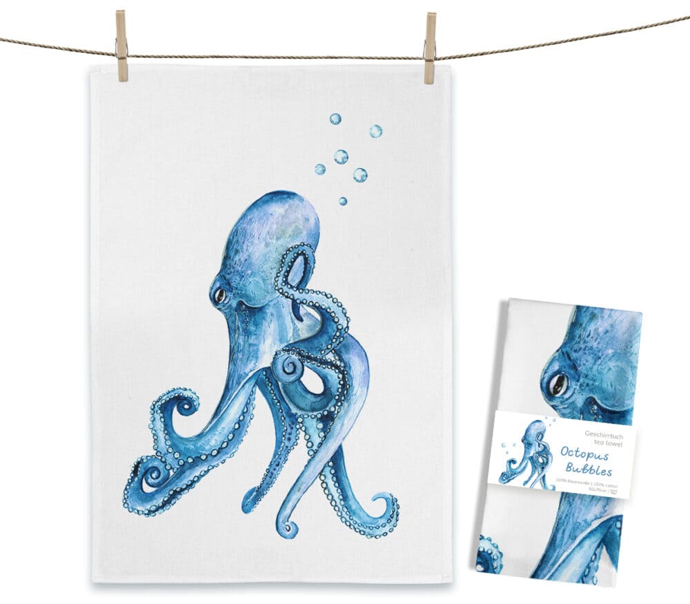 Liebevoll handgemaltes Aquarell-Design „Octopus Bubbles“ von Christine Matthies