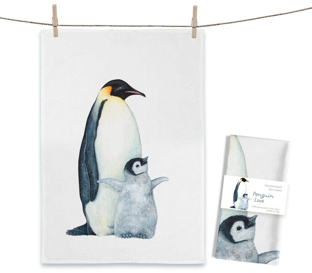 Liebevoll handgemaltes Aquarell-Design „Penguin Love“ von Christine Matthies