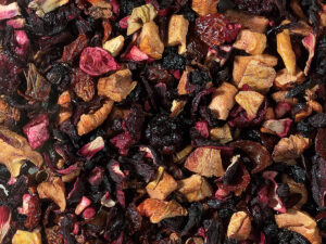 Zutaten:Fliederbeeren, Hibiskusblüten, Apfelstücke, Hagebuttenschalen, Aroma, Brombeeren, gefr.-getr.Himbeeren, Walderdbeerblätter, gefr.-getr. Erdbeerstücke, viel Liebe, etwas Nordeutscher Zauber 😉