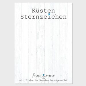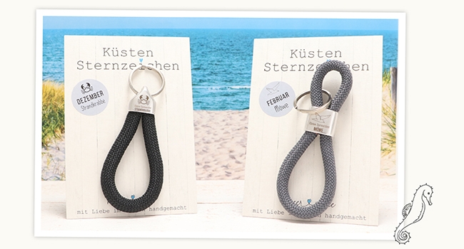 Der Schlüsselanhänger mit Küstensternzeichen wird mit einer liebevoll gestalteten Schmuckkarte geliefert.