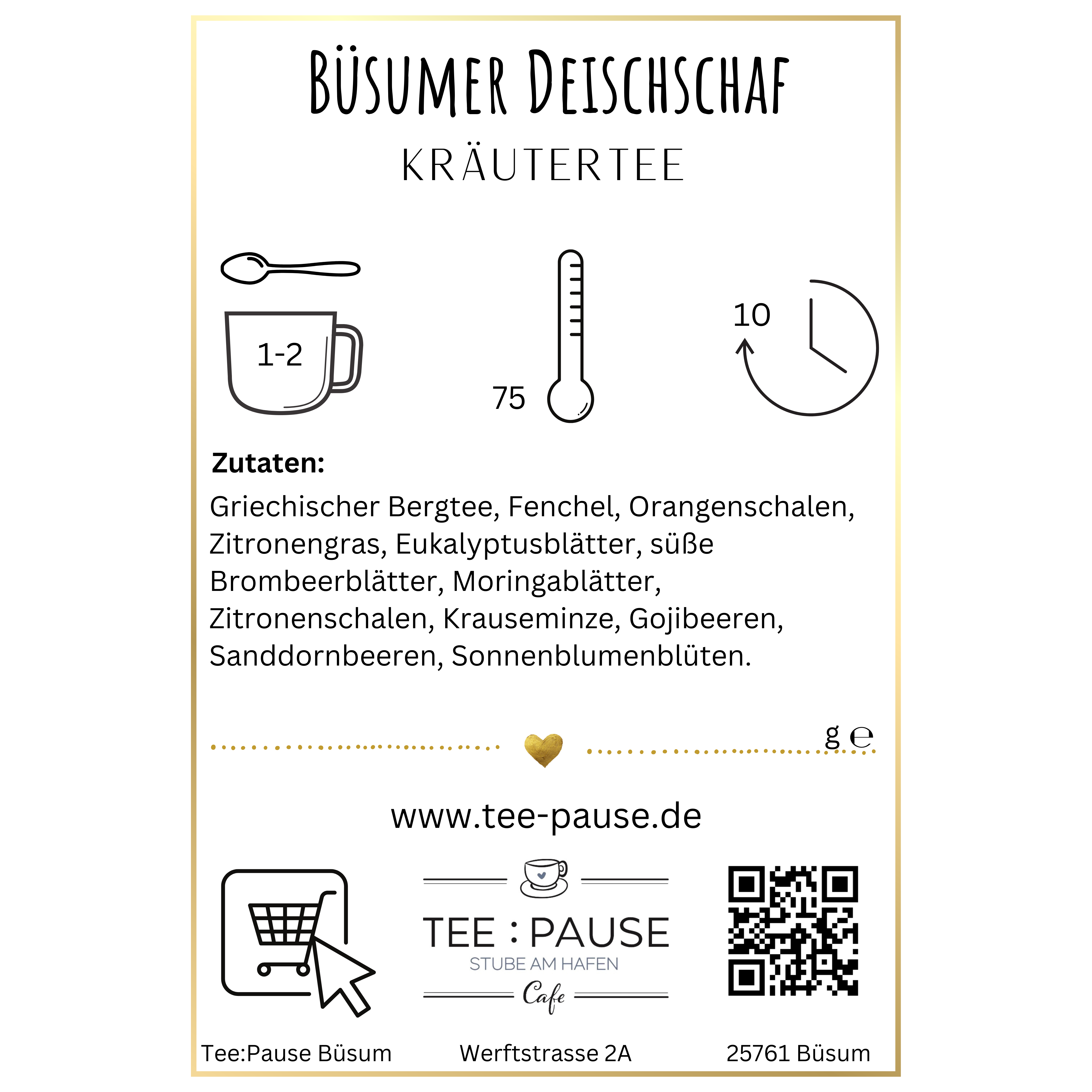 Für diese Komposition haben wir unseren griechischen Bergtee, der sich vermehrter Beliebtheit erfreut, als Basis verwendet. Sein fein-herber Geschmack wird abgerundet durch süße Brombeerblätter und Fenchel. Eukalyptusblätter und Krauseminze sorgen für den extra Frische-Kick, Goji- und Sanddornbeeren für eine richtige Gipfelpause. Steigen Sie in andere Sphären mit dieser phantastischen Kräuterteemischung!
