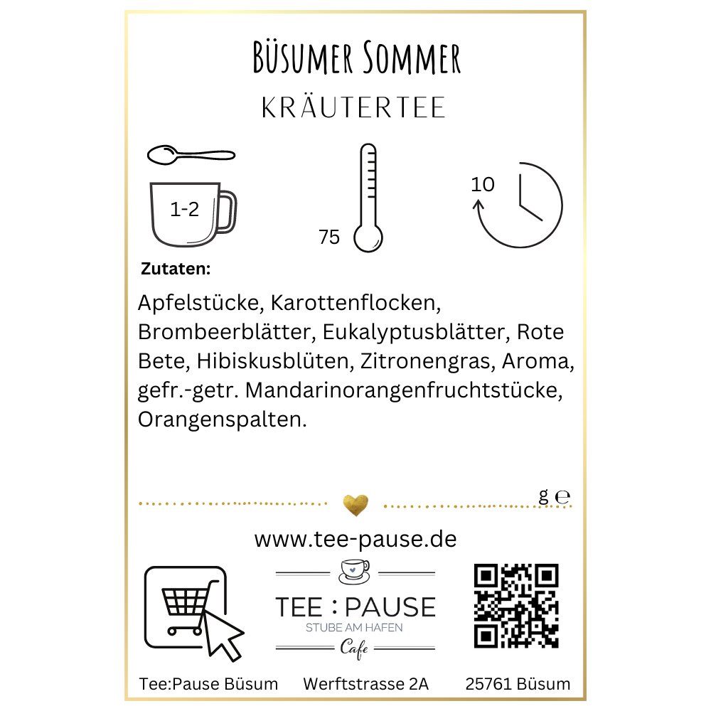 Diese milde, abgestimmte Kreation gewinnt fruchtige Süße aus Apfelstücken und Karottenflocken und einen Hauch Frische von Eukalyptusblättern, Zitronengras, Mandarinorangenfruchtfleisch und einer Nuance Hibiskus. Rote-Beete-Stücke sorgen für die satte Tassenfarbe mit leicht erdiger Geschmacksnote. Orangenspalten mit getrocknetem Fruchtfleisch verweisen dezent auf die geschmacklichen Aromennoten von frischen Zitrusfrüchten. Alles in allem eine perfekte Komposition.