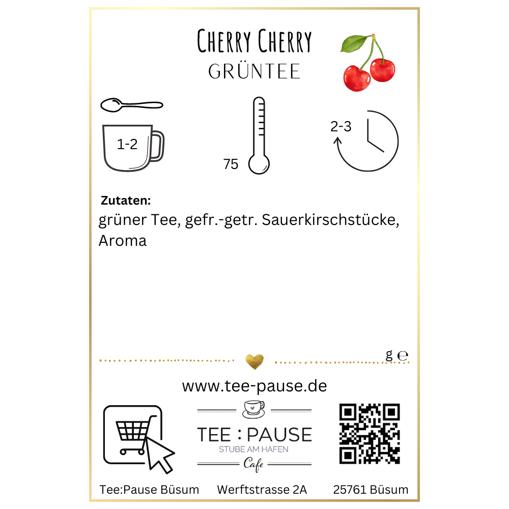 Zutaten: grüner Tee, gefr.-getr. Sauerkirschstücke, Aroma