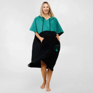 - Mit kleinem Packmaß, aus 100 % Baumwolle, nach Öko Tex Standard 100 zertifiziert. Angenehm auf der Haut und gewohnt funktionell. Der schwarz-graue Poncho ist prima in die Kapuze einrollbar und praktischerweise als Reisekopfkissen zu verwenden. Die große Fronttasche bietet Platz für Utensilien wie Shampoo, Bürste oder auch deine Hände. Nachhaltigkeit und Natürlichkeit in der Rohstoffauswahl spielt bei uns eine große Rolle – nicht nur deiner Haut zuliebe. Vor allem auf deinen Reisen, aber natürlich auch nach dem Duschen – beim Sport und zu Hause, im Freizeitbad, in der Therme, beim Wassersport, in der Sauna, im Fitnessstudio, beim Camping etc. Dein Poncho fällt als Leichtgewicht mit etwa 700 g kaum auf, lässt dich nicht im Nassen stehen und bewahrt dich als mobile Umkleidekabine beim Umziehen vor neugierigen Blicken. Pflegeleicht, maschinenwaschbar und trocknergeeignet.