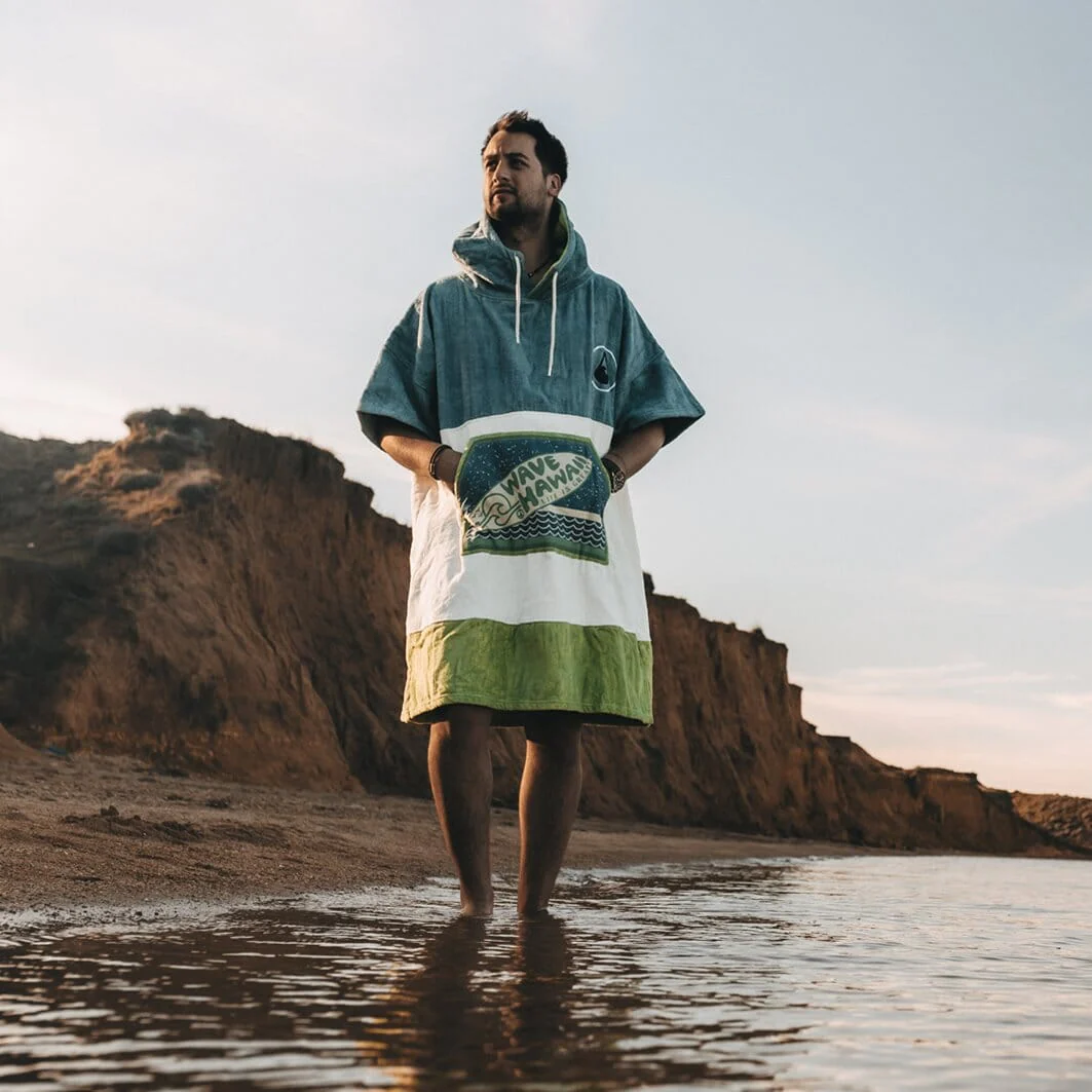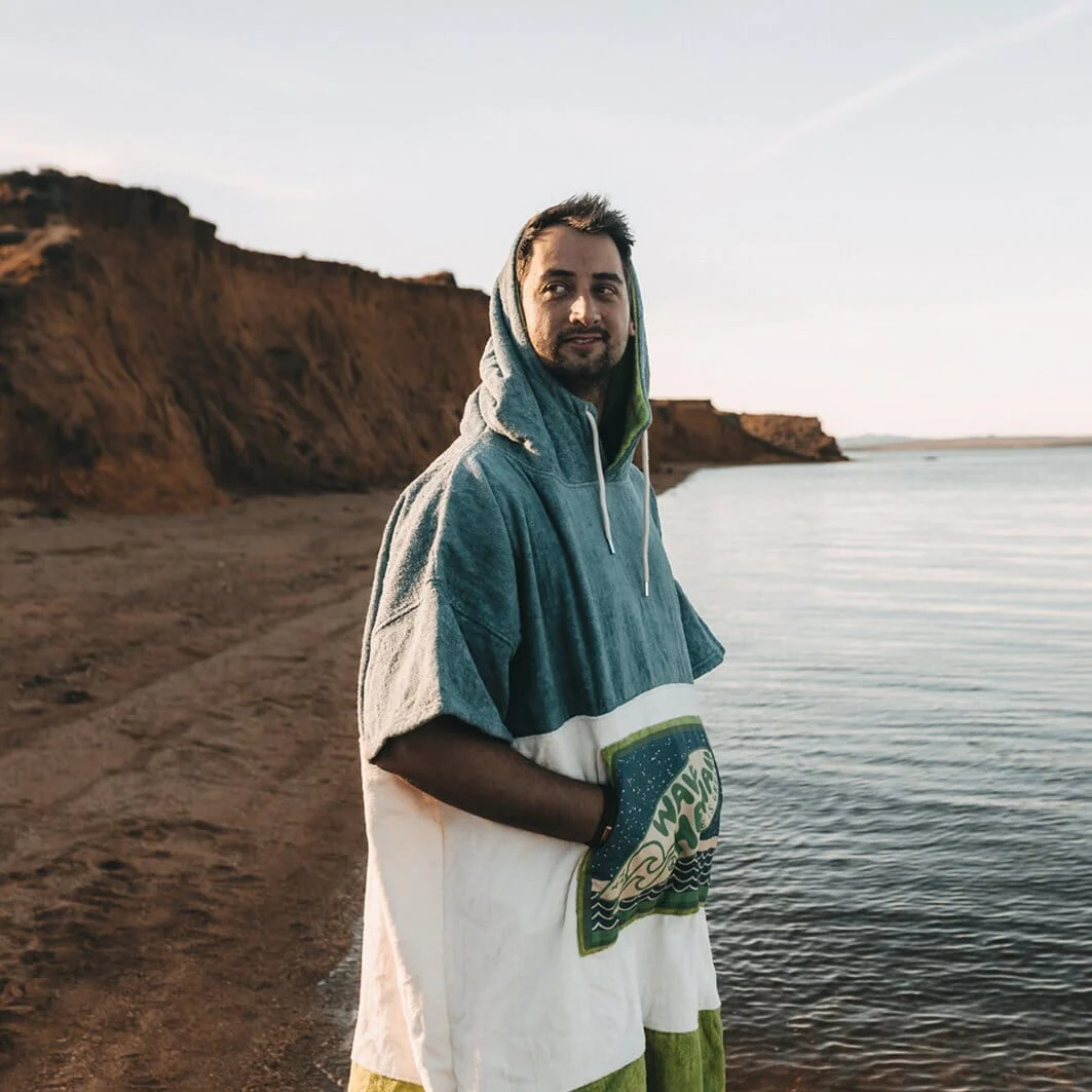 Gemütlicher Poncho in Größe L aus super flauschigem Material mit 100 % Baumwolle, die nach Öko Tex Standard 100 zertifiziert ist. Außen weiches und robustes Velours, innen angenehmes und saugfähiges Frottee. Schön weich auf der Haut und gewohnt funktionell. Zweilagige, besonders warme Kapuze mit hohem Kragen und Kordel. Die große Fronttasche bietet Platz für Utensilien wie Shampoo oder Bürste oder auch deine kalten Hände. Ein echter Hingucker. Die sorgsam ausgesuchten Stoffe sind besonders flauschig und hautfreundlich. Nachhaltigkeit und Natürlichkeit in der Rohstoffauswahl spielt bei uns eine große Rolle – nicht nur deiner Haut zuliebe. Ob nach dem Duschen – beim Sport und zu Hause, im Freizeitbad, in der Therme, beim Wassersport, in der Sauna, im Fitnessstudio, beim Camping etc. Dein Poncho hält dich immer schön warm, lässt dich nicht im Nassen stehen und bewahrt dich als mobile Umkleidekabine beim Umziehen vor neugierigen Blicken. Pflegeleicht, maschinenwaschbar und trocknergeeignet.