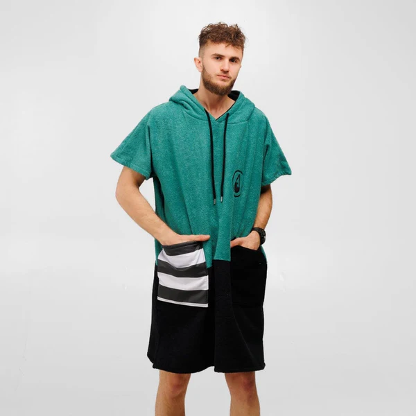 - Mit kleinem Packmaß, aus 100 % Baumwolle, nach Öko Tex Standard 100 zertifiziert. Angenehm auf der Haut und gewohnt funktionell. Der schwarz-graue Poncho ist prima in die Kapuze einrollbar und praktischerweise als Reisekopfkissen zu verwenden. Die große Fronttasche bietet Platz für Utensilien wie Shampoo, Bürste oder auch deine Hände. Nachhaltigkeit und Natürlichkeit in der Rohstoffauswahl spielt bei uns eine große Rolle – nicht nur deiner Haut zuliebe. Vor allem auf deinen Reisen, aber natürlich auch nach dem Duschen – beim Sport und zu Hause, im Freizeitbad, in der Therme, beim Wassersport, in der Sauna, im Fitnessstudio, beim Camping etc. Dein Poncho fällt als Leichtgewicht mit etwa 700 g kaum auf, lässt dich nicht im Nassen stehen und bewahrt dich als mobile Umkleidekabine beim Umziehen vor neugierigen Blicken. Pflegeleicht, maschinenwaschbar und trocknergeeignet.