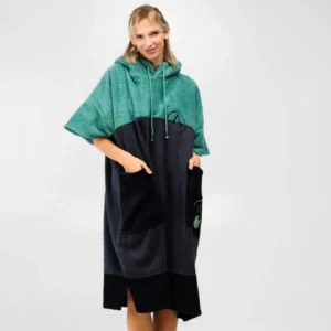 - Mit kleinem Packmaß, aus 100 % Baumwolle, nach Öko Tex Standard 100 zertifiziert. Angenehm auf der Haut und gewohnt funktionell. Der schwarz-graue Poncho ist prima in die Kapuze einrollbar und praktischerweise als Reisekopfkissen zu verwenden. Die große Fronttasche bietet Platz für Utensilien wie Shampoo, Bürste oder auch deine Hände. Nachhaltigkeit und Natürlichkeit in der Rohstoffauswahl spielt bei uns eine große Rolle – nicht nur deiner Haut zuliebe. Vor allem auf deinen Reisen, aber natürlich auch nach dem Duschen – beim Sport und zu Hause, im Freizeitbad, in der Therme, beim Wassersport, in der Sauna, im Fitnessstudio, beim Camping etc. Dein Poncho fällt als Leichtgewicht mit etwa 700 g kaum auf, lässt dich nicht im Nassen stehen und bewahrt dich als mobile Umkleidekabine beim Umziehen vor neugierigen Blicken. Pflegeleicht, maschinenwaschbar und trocknergeeignet.