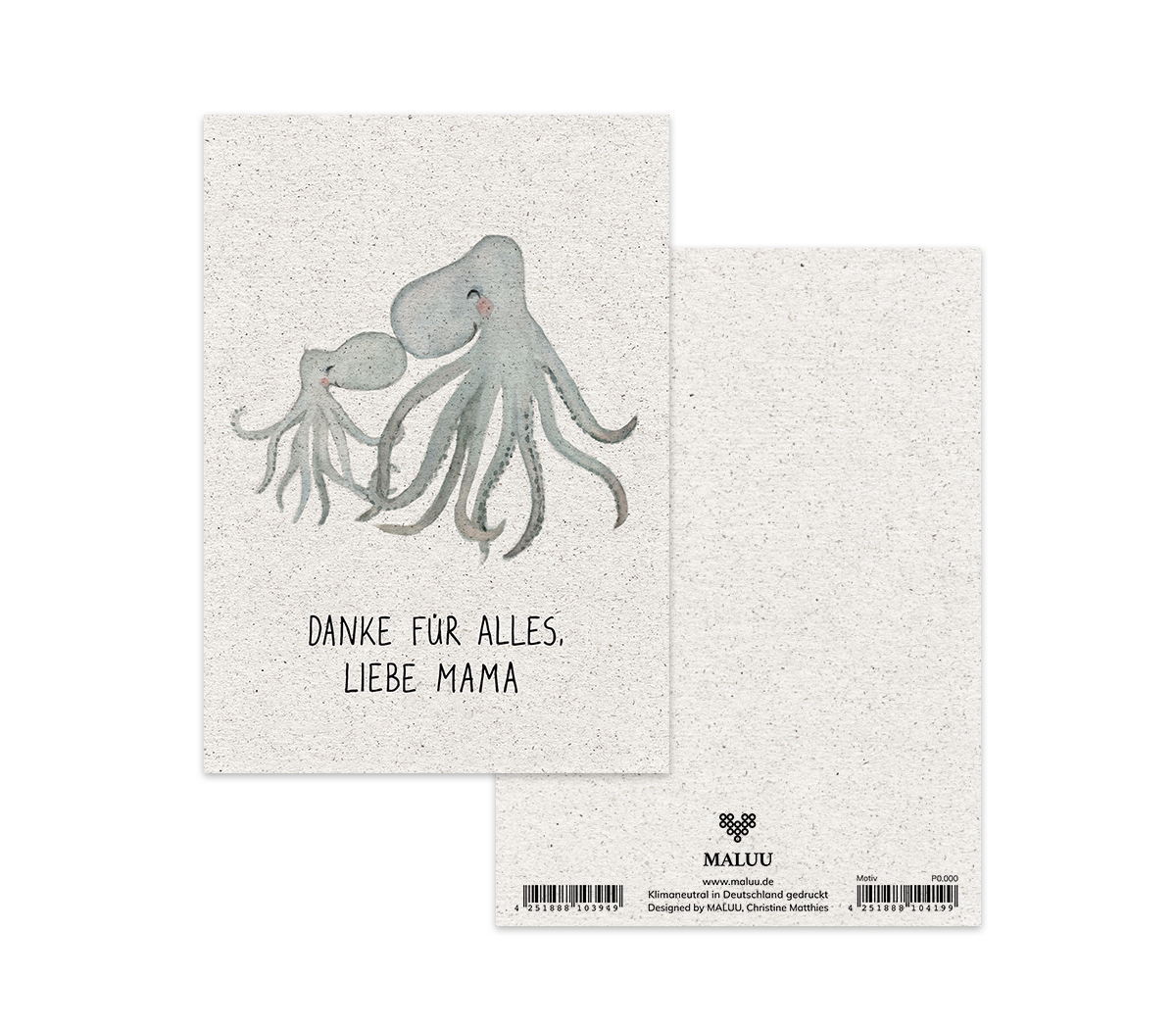 Liebevoll handgemaltes und einzigartiges Aquarell-Design „Danke Mama“ von Christine Matthies
