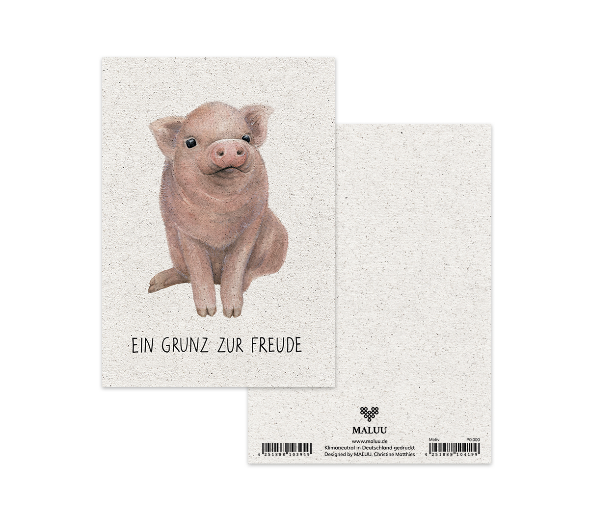 Liebevoll handgemaltes und einzigartiges Aquarell-Design „Ein Grunz zur Freude“ von Christine Matthies