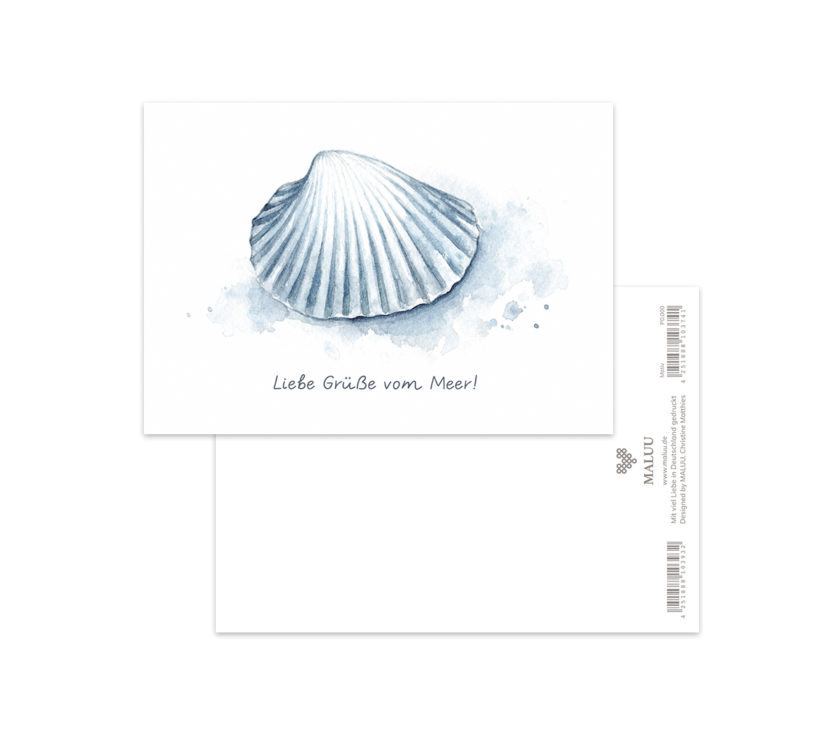 Liebevoll handgemaltes und einzigartiges Aquarell-Design „Grüße vom Meer“ von Christine Matthies