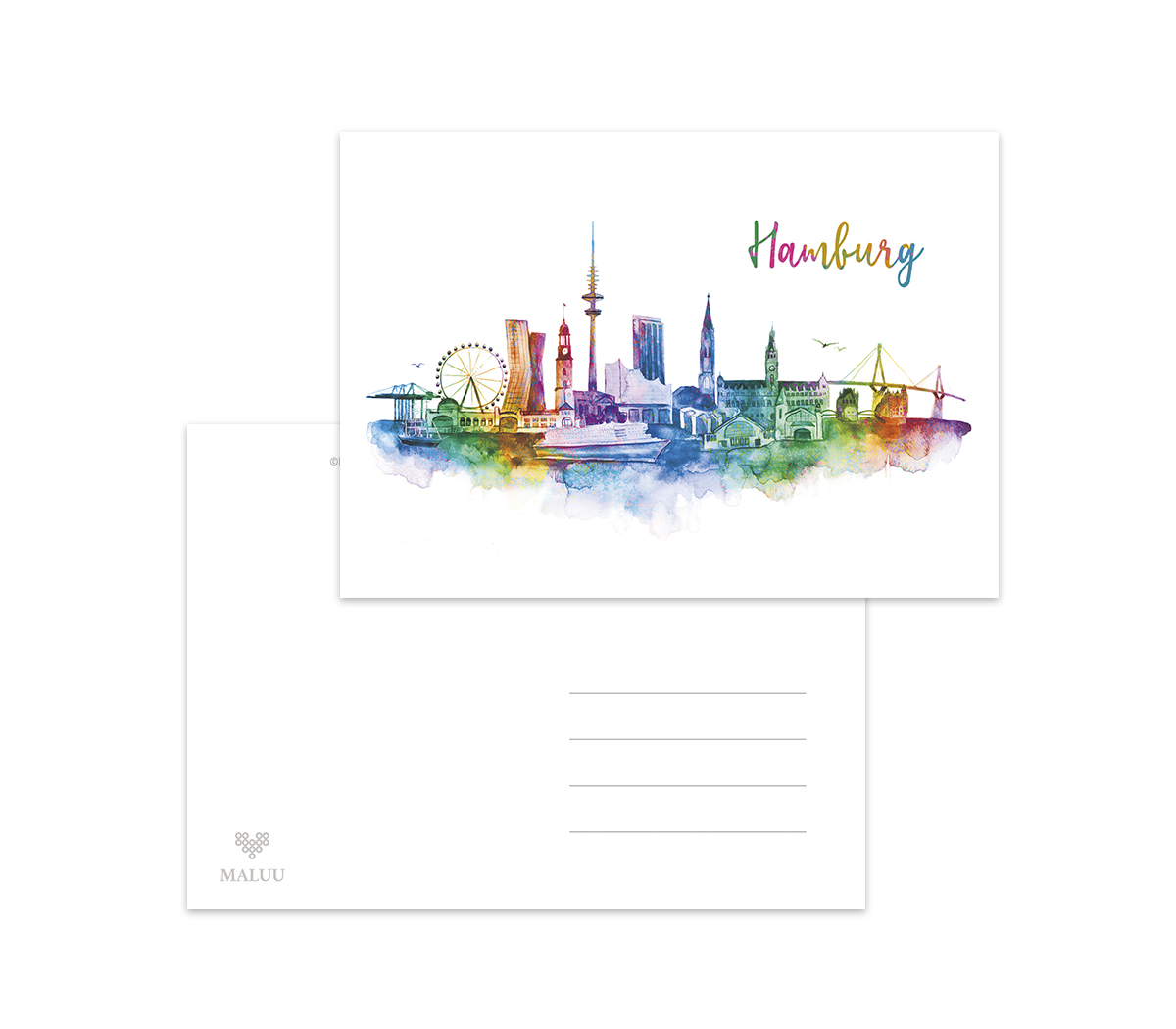 Liebevoll handgemaltes und einzigartiges Aquarell-Design „Hamburg rainbow“ von Christine Matthies
