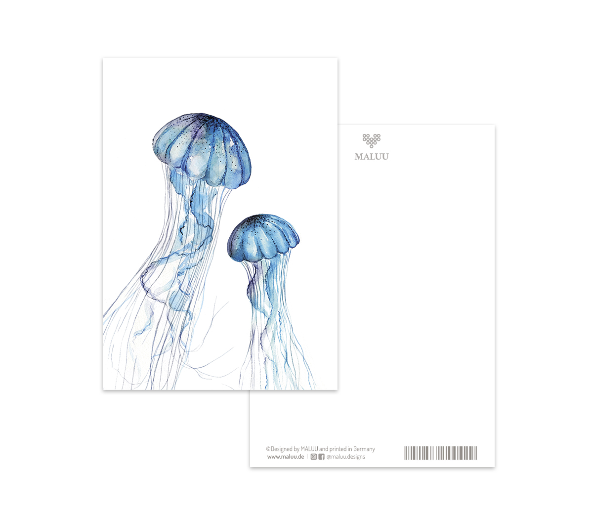 Liebevoll handgemaltes und einzigartiges Aquarell-Design „Jellyfish Duo“ von Christine Matthies