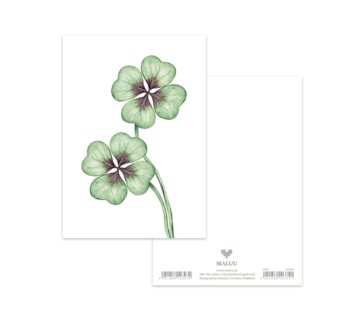 Liebevoll handgemaltes und einzigartiges Aquarell-Design „Lucky Clover“ von Christine Matthies