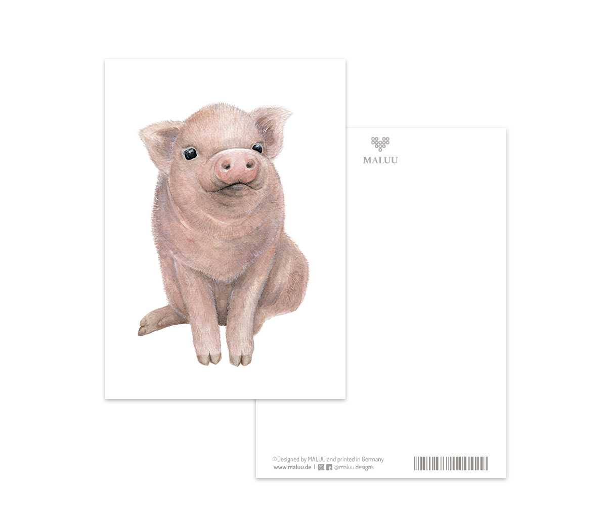 Liebevoll handgemaltes und einzigartiges Aquarell-Design „Lucky Piglet“ von Christine Matthies