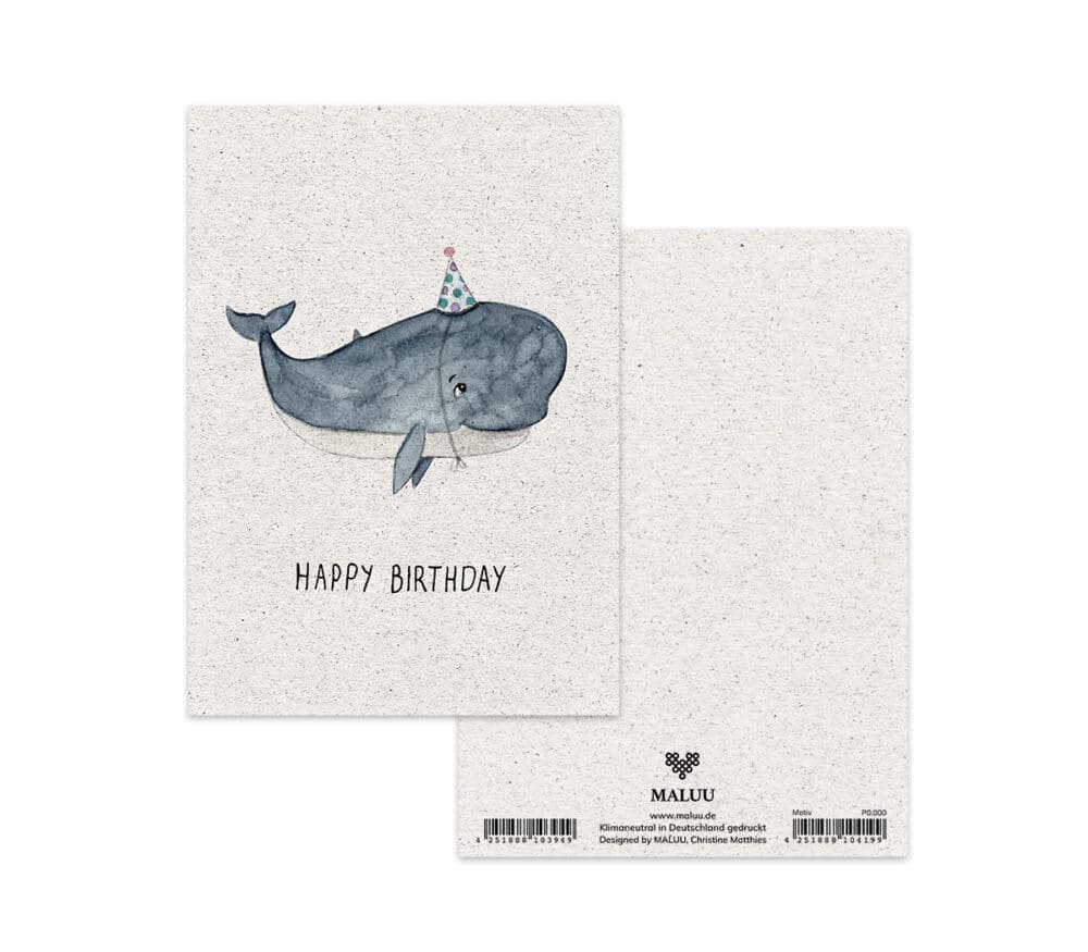 Liebevoll handgemaltes und einzigartiges Aquarell-Design „Party Whale“ von Christine Matthies