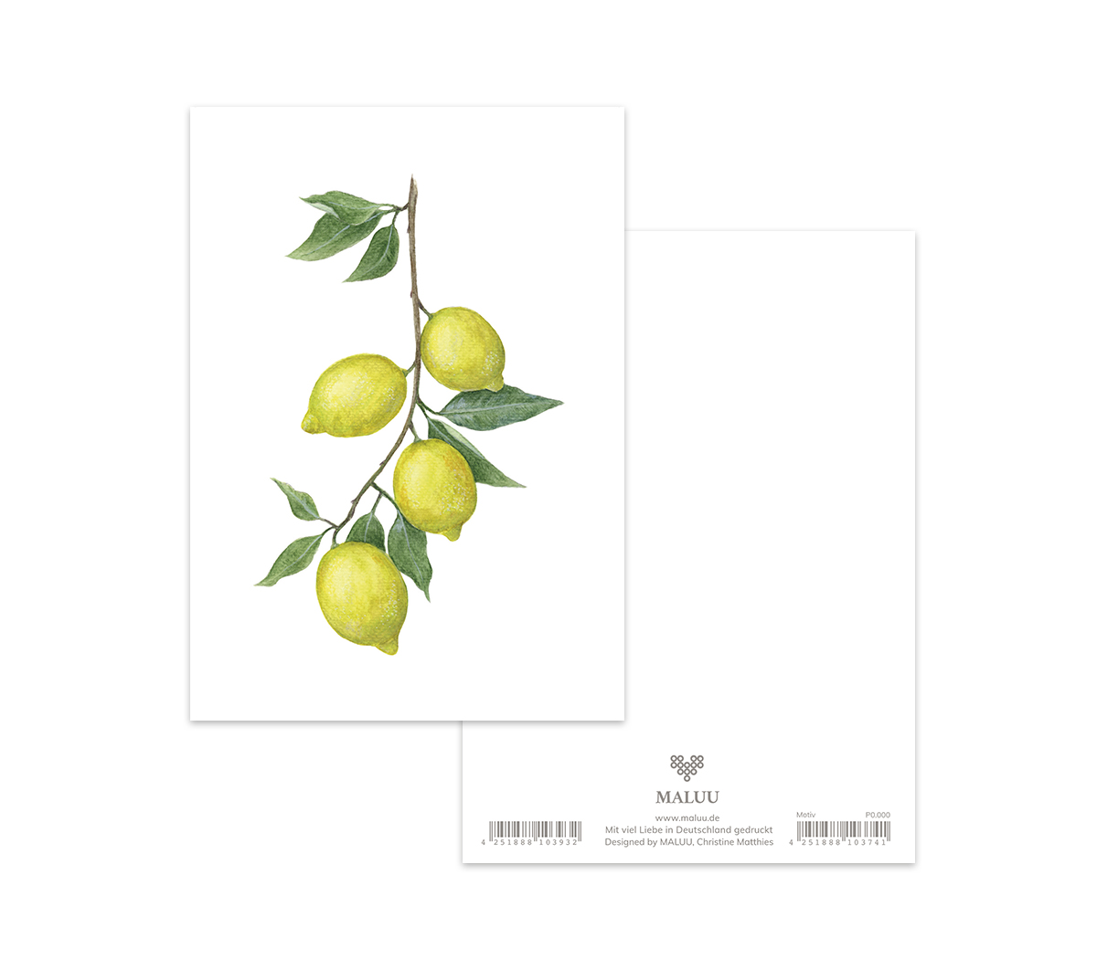 Liebevoll handgemaltes und einzigartiges Aquarell-Design „Sunny Lemons“ von Christine Matthies