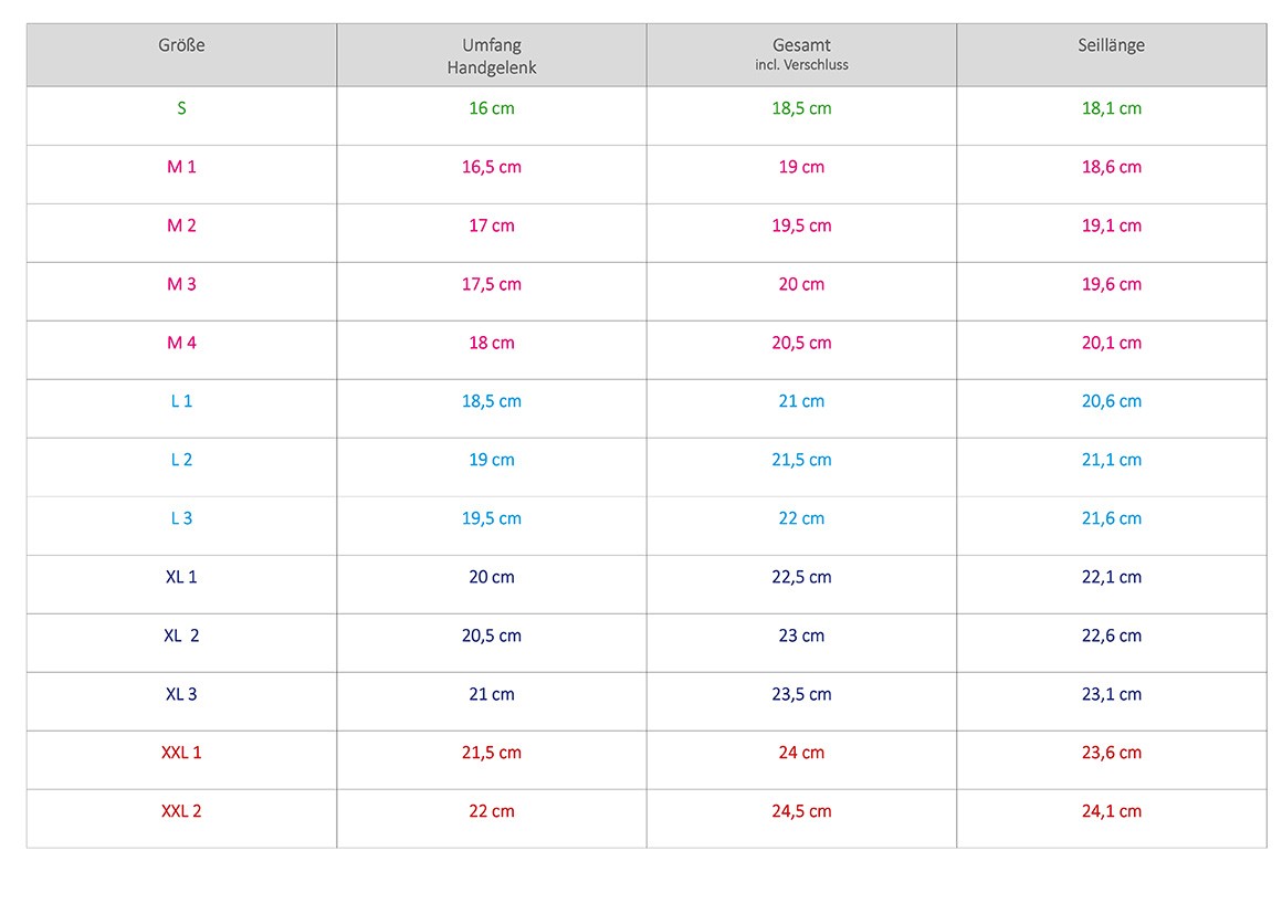 Größe XS: Passend für dein Handgelenkumfang von ca. 15cm