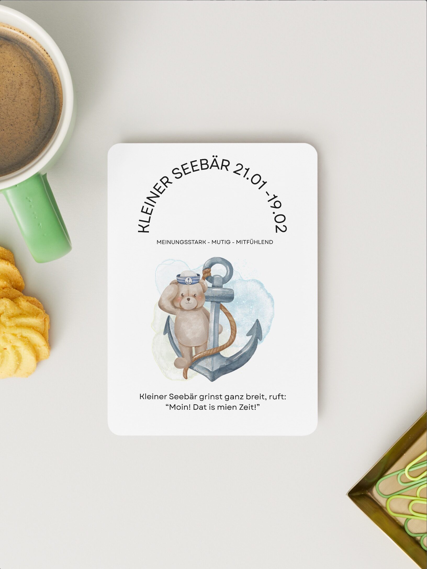 Moin, Küstenkind! Hier kommt die perfekte Postkarte für alle, die ihr Sternzeichen lieben – und dabei gern eine frische Brise Humor tanken.