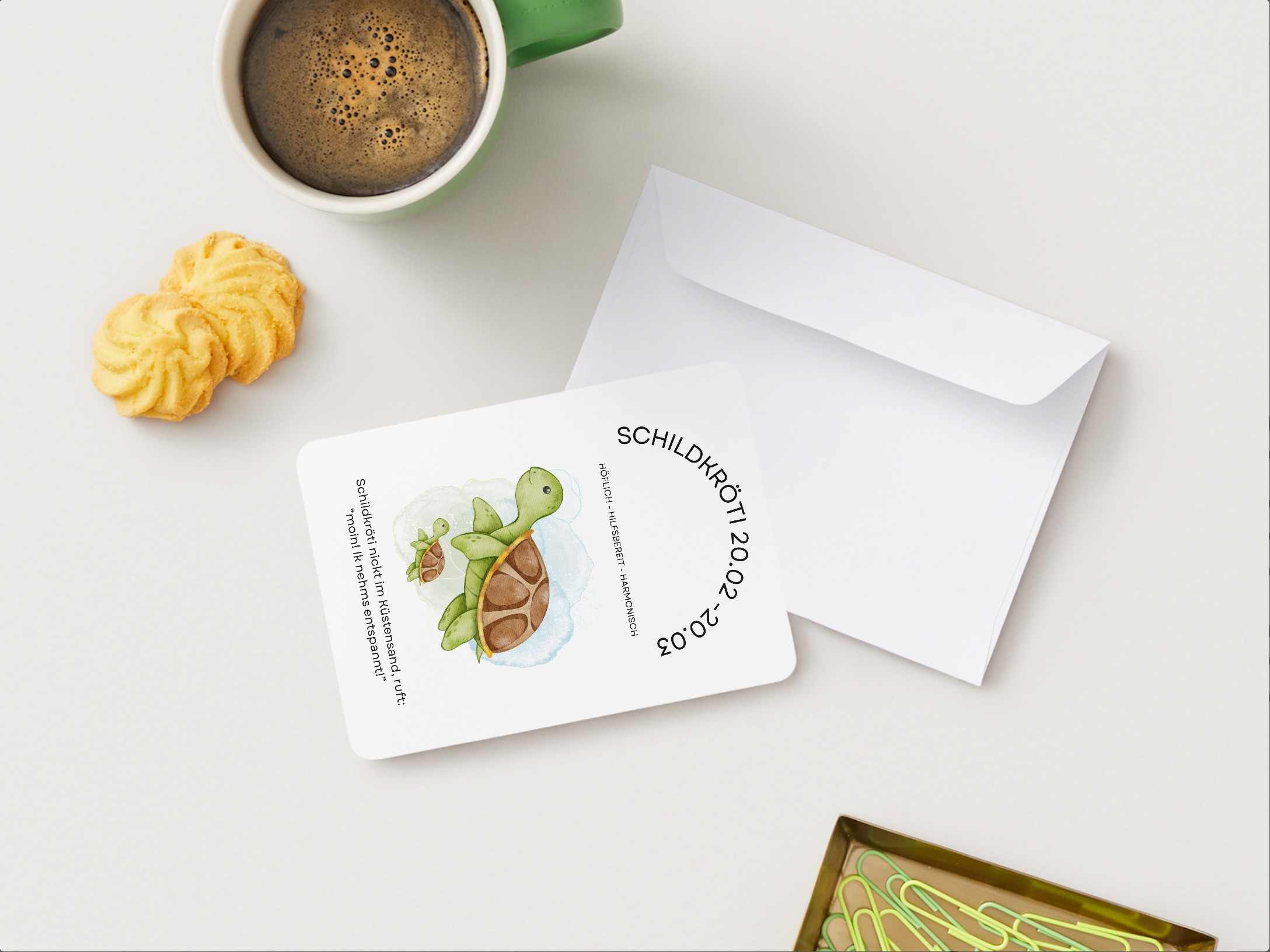 Sternzeichen Postkarte SCHILDKRÖTI „FISCHE“ (20.02 – 20.03)