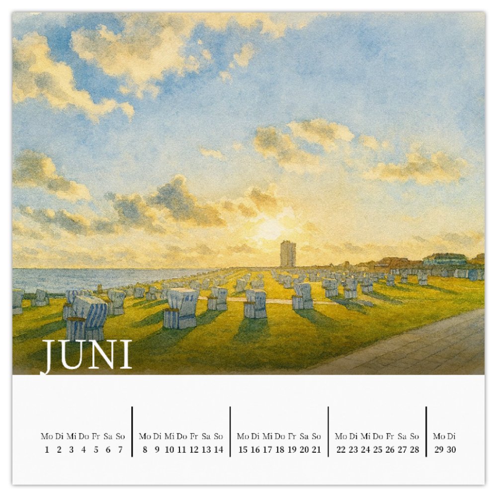 Von bunten Strandkörben über Krabbenkutter bis hin zu Sonnenuntergängen am Deich: jeder Monat erzählt seine eigene kleine Büsum-Geschichte.