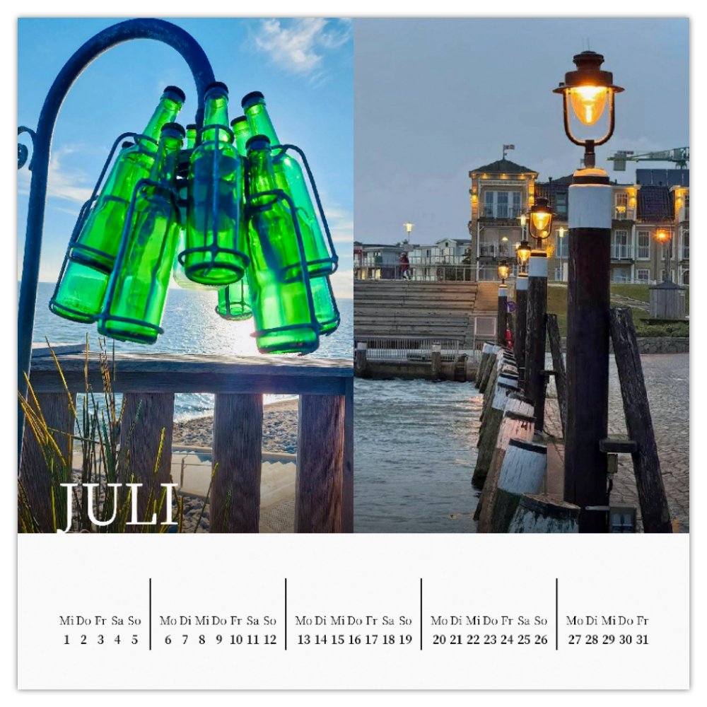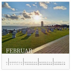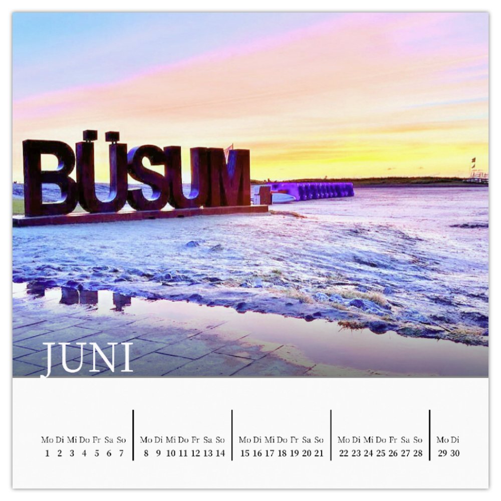Von bunten Strandkörben über Krabbenkutter bis hin zu Sonnenuntergängen am Deich: jeder Monat erzählt seine eigene kleine Büsum-Geschichte.